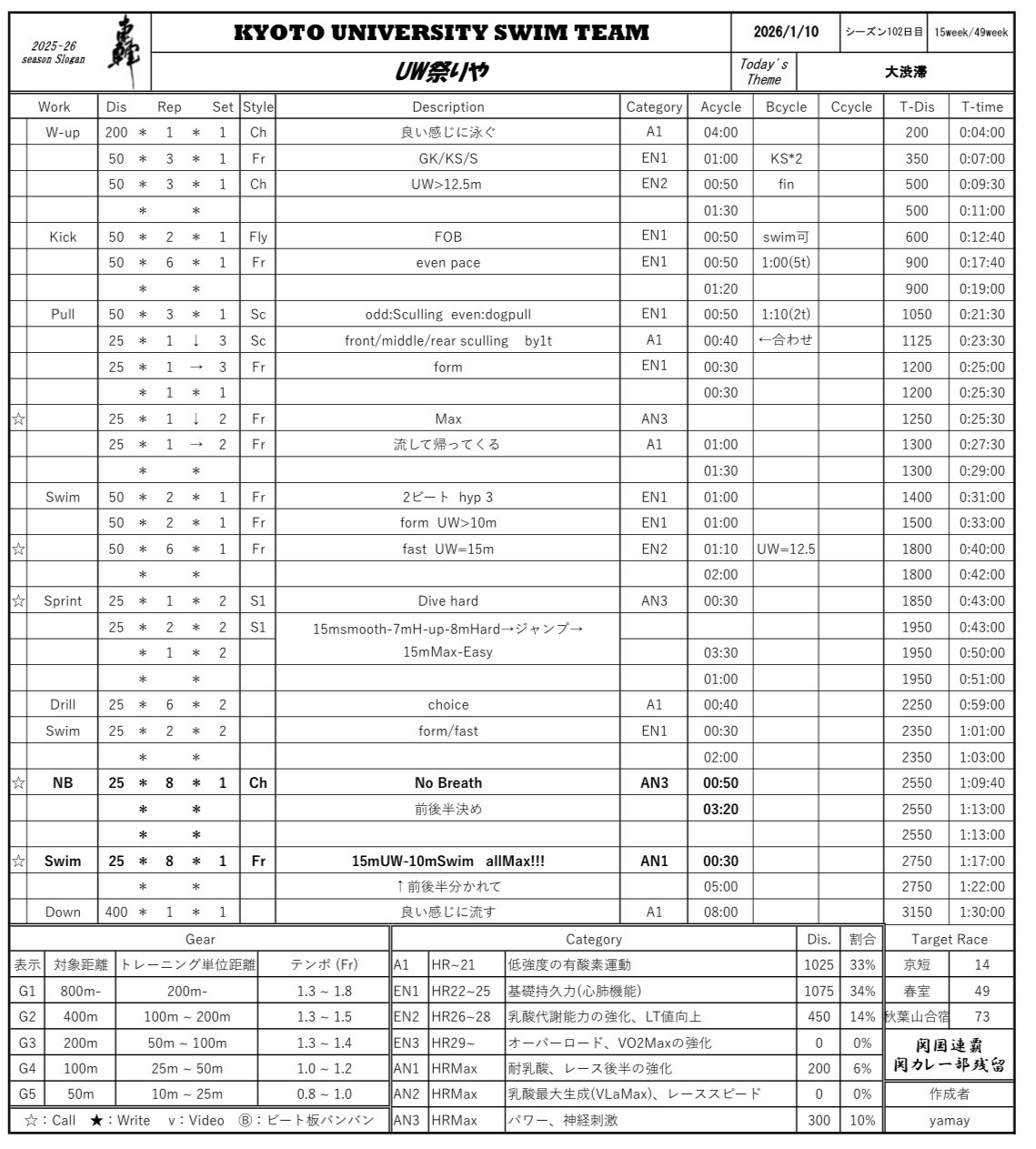 雑談というか、まずタイムリーな悩みとして明日の練習メニューがあります