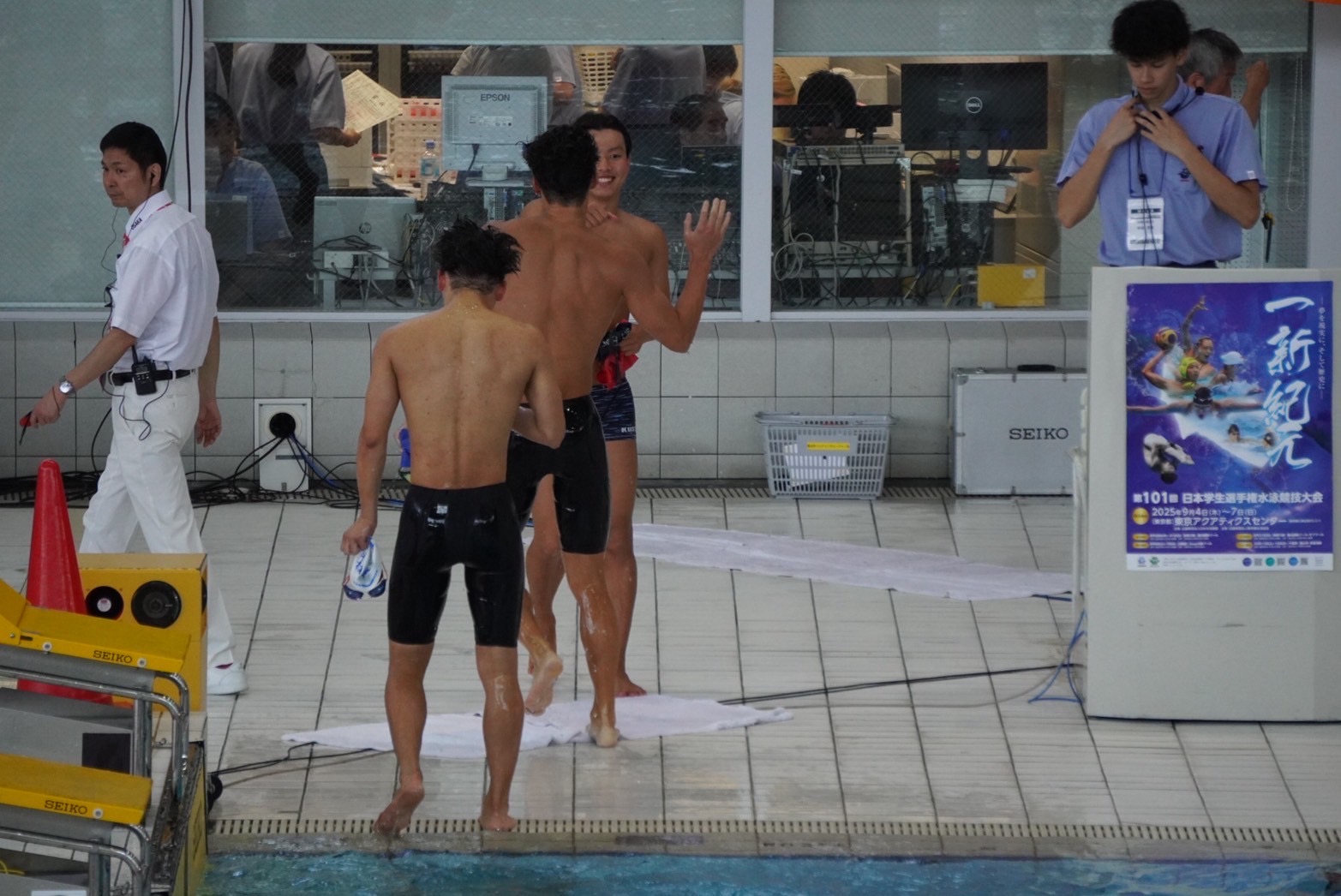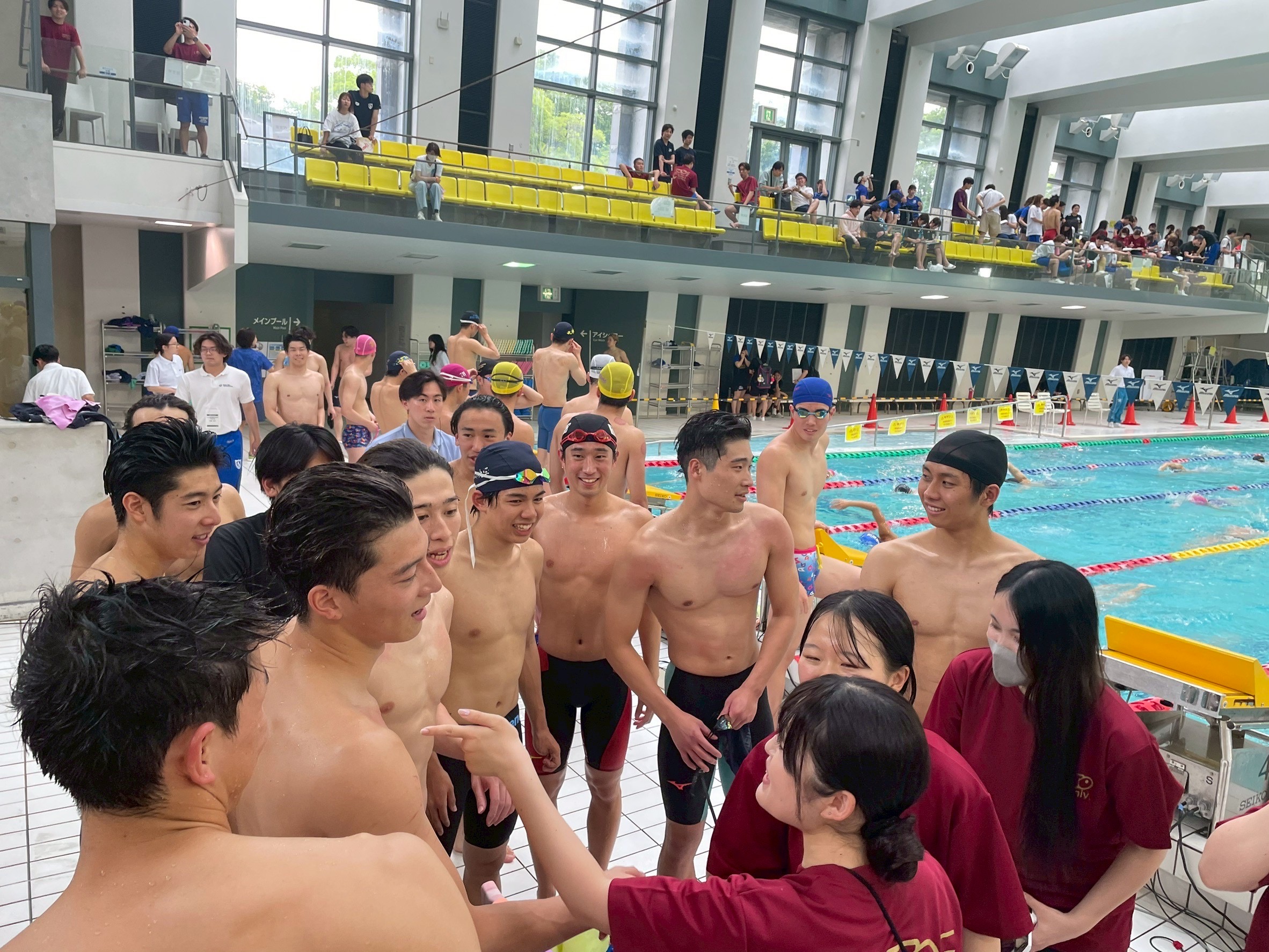 関カレは女子がすごかった。全員がチームのために泳いでいて理想のチームでした。こっちだって2部優勝して1部あがったのに、羨ましかったくらいです笑