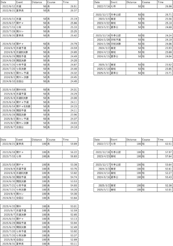 僕は復帰後の割にはまあまあって感じでした。こう考えると入部して2か月とかの関国であんだけ速かった後輩たちほんとにすごい。ゆうごと河野かなやっぱ。