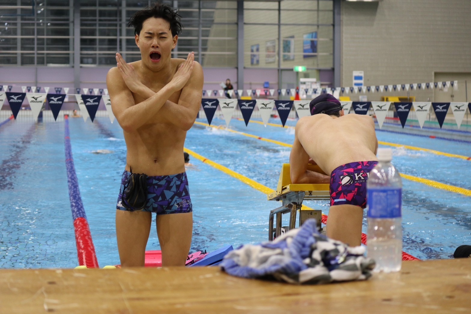 関国は主任として恥ずかしくない、チームを引っ張るレースをすることが目標でした。水泳は個人種目ですが、結構チームの流れってのは大きいと思います。だからこそ2フリに縄田がいないってわかった時、3位やった目標を1位に変えました。2フリの後には最強の中堂と関国超強い後藤が控えているので、ゆいがをここで潰せば京大の総合優勝がほぼ確になるくらいの流れ持ってこれると思いました。