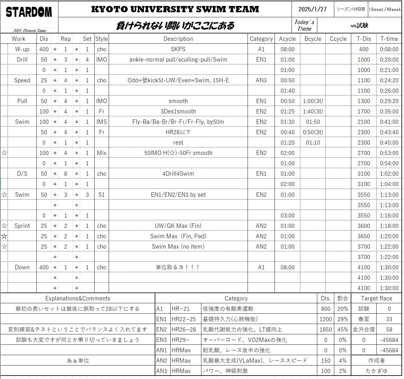 色々試行錯誤しながら改めて泳ぎ作り直してこうと思います。最近の月曜日は脈管理がテーマなんですかね。ロング速い人ってタイムと脈の管理めちゃ上手くて尊敬してます。タイムばっかり意識して脈ほとんど意識できてないので脈の範囲内でタイム出したり、心拍数とタイムの感覚を合わせられるようにちょっとずつでも上達させたいですね。