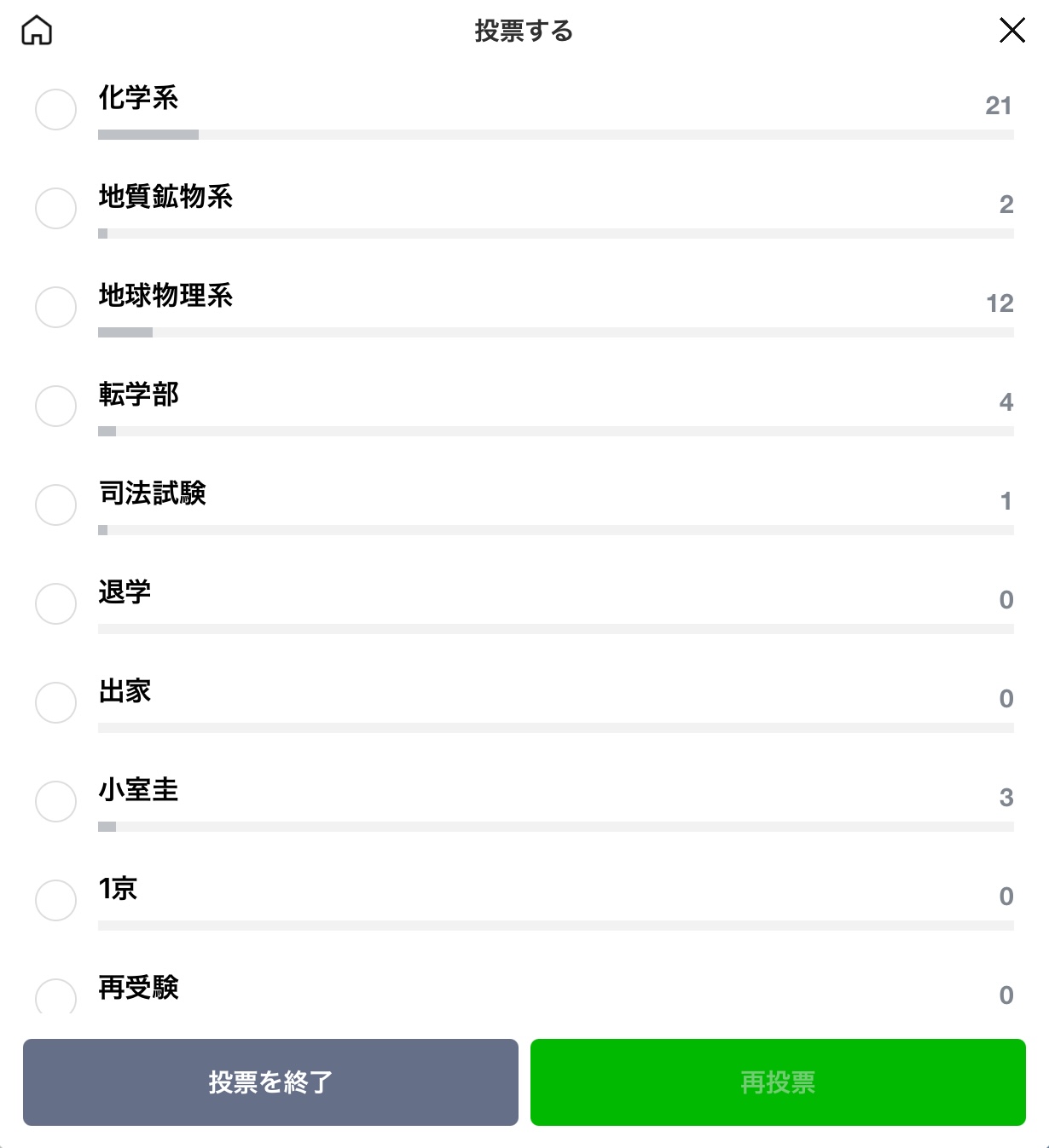 300人中200人くらいが投票してくれたので、やはり学年ラインはアンケートグループであるとわかりました。