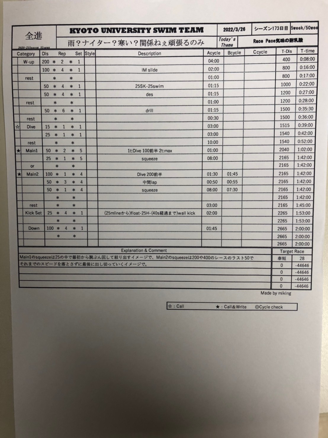 みんながいなければ一日目の300のメニューで終わっていたと思います笑