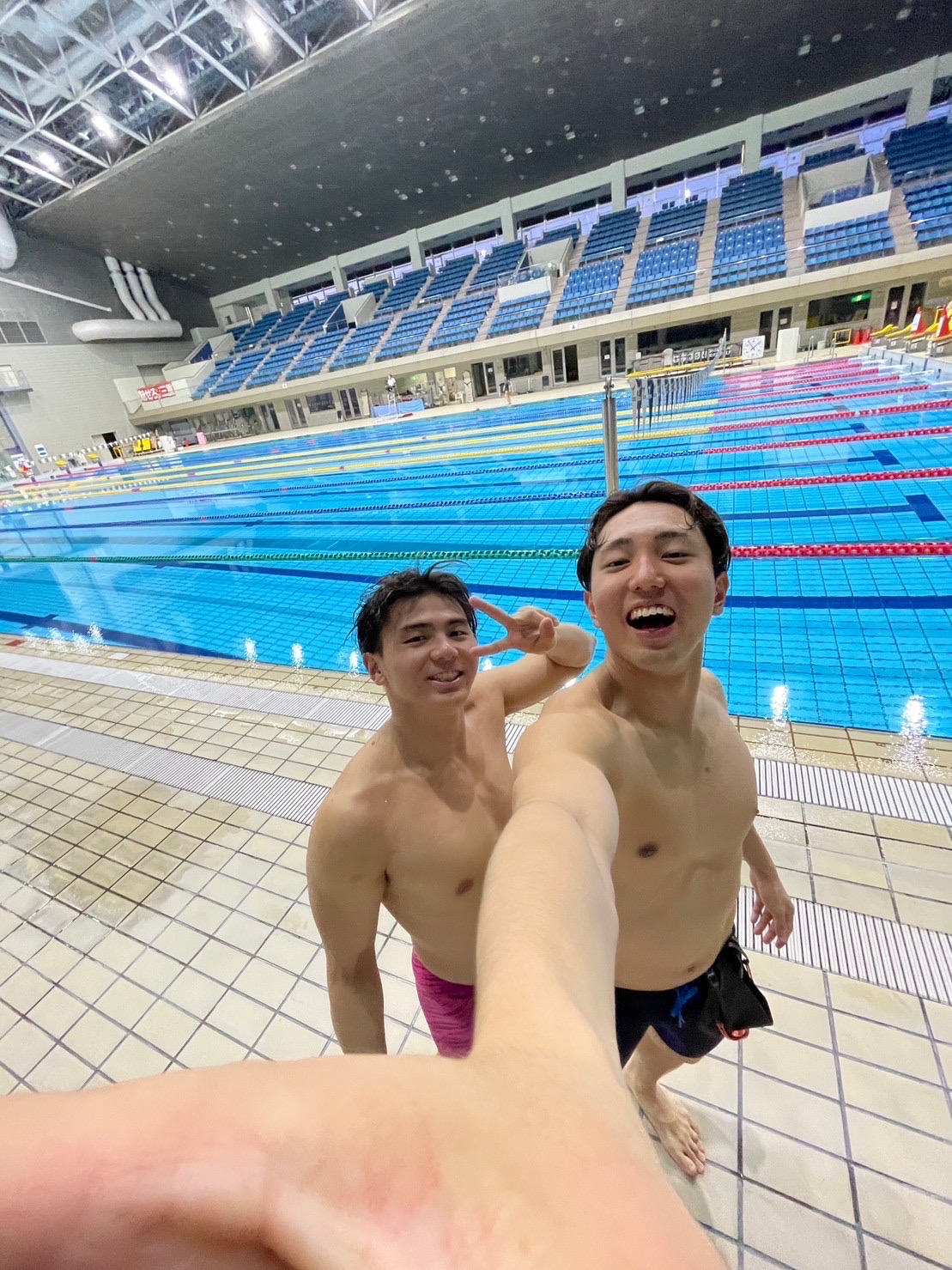 合宿お疲れ様でした!おもろくて、喋りやすくて、練習中に一緒に頑張れるゆういちろうさんと一緒に泳げて楽しかったです!またよろしくお願いします!