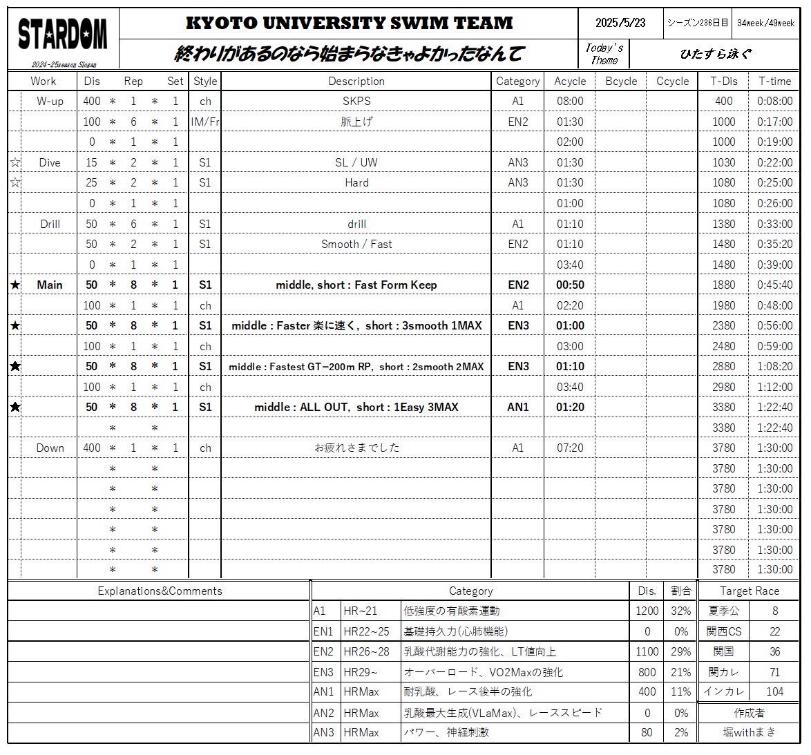 来週は夏季公です。50Frと1500Fr、100Brに出場します。本命は50Frと1500Frです。半フリは多分小学生くらいから出てない?ので楽しみです。センゴは去年はなぜか1550泳いだので実質初?なので楽しみです。100Brはおまけです。