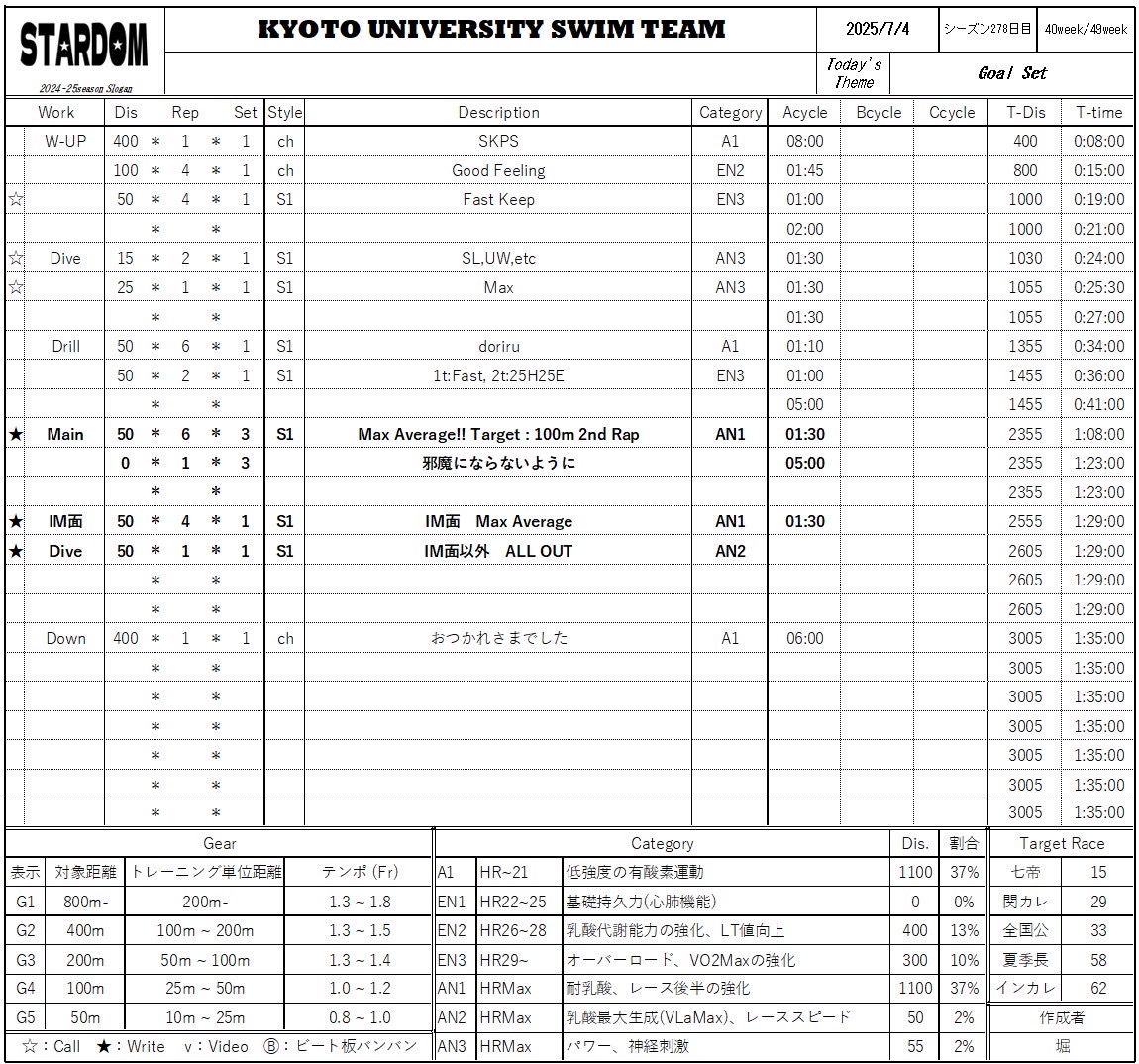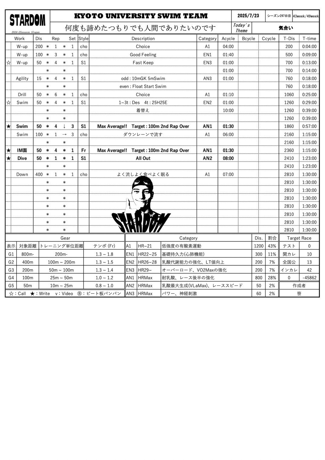 100Brの入りは34くらいではいけると思うのであとは後半次第、