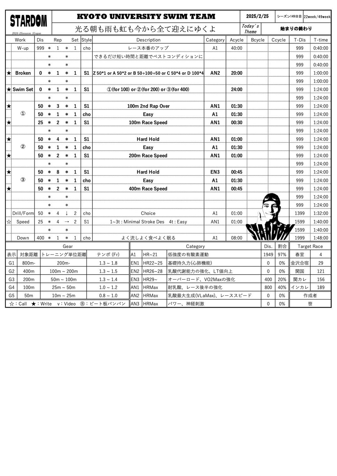 そろそろ200を意識した練習もしていかないといけないと思いました。
