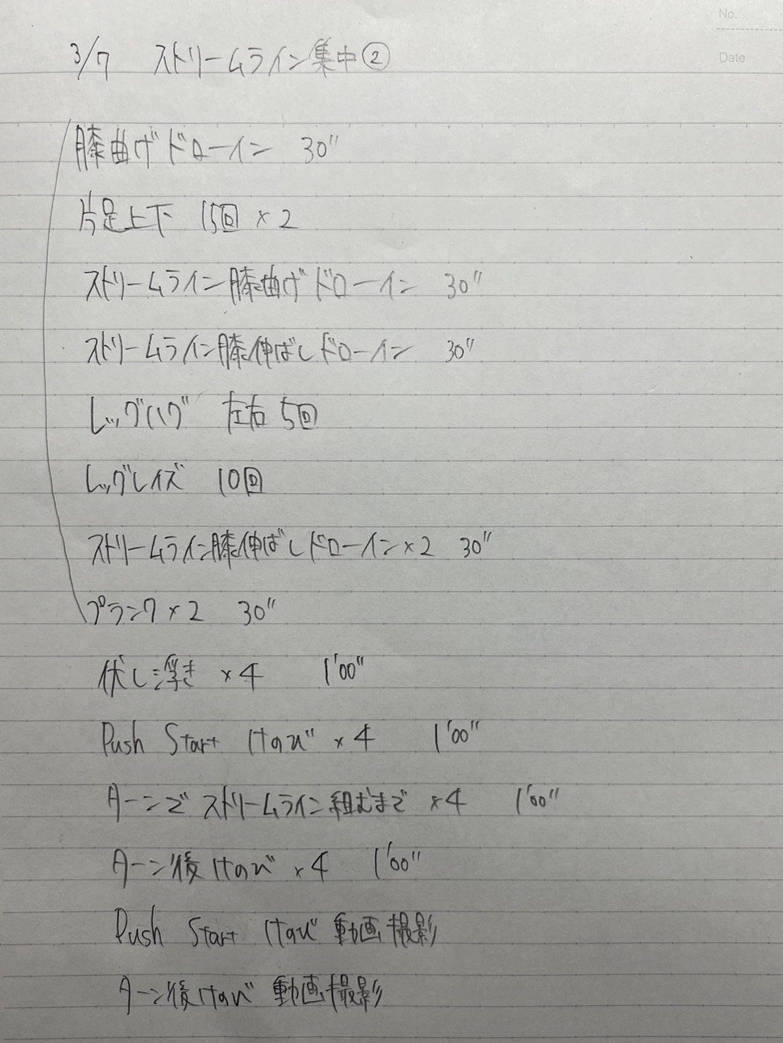 はじめにドローインと腹筋・体幹トレーニングをし、