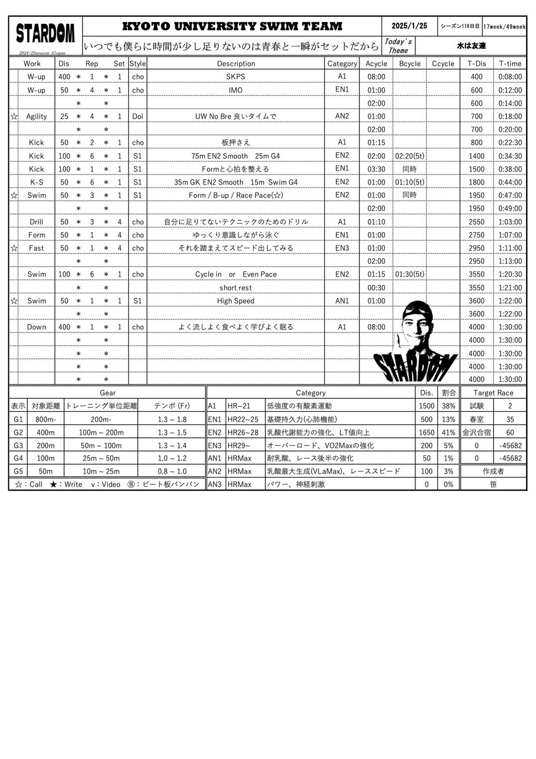 京大の傾向としてガッと飛ばすメニューが多いですが、じっくり回るメニューも大事にしていきたいです。