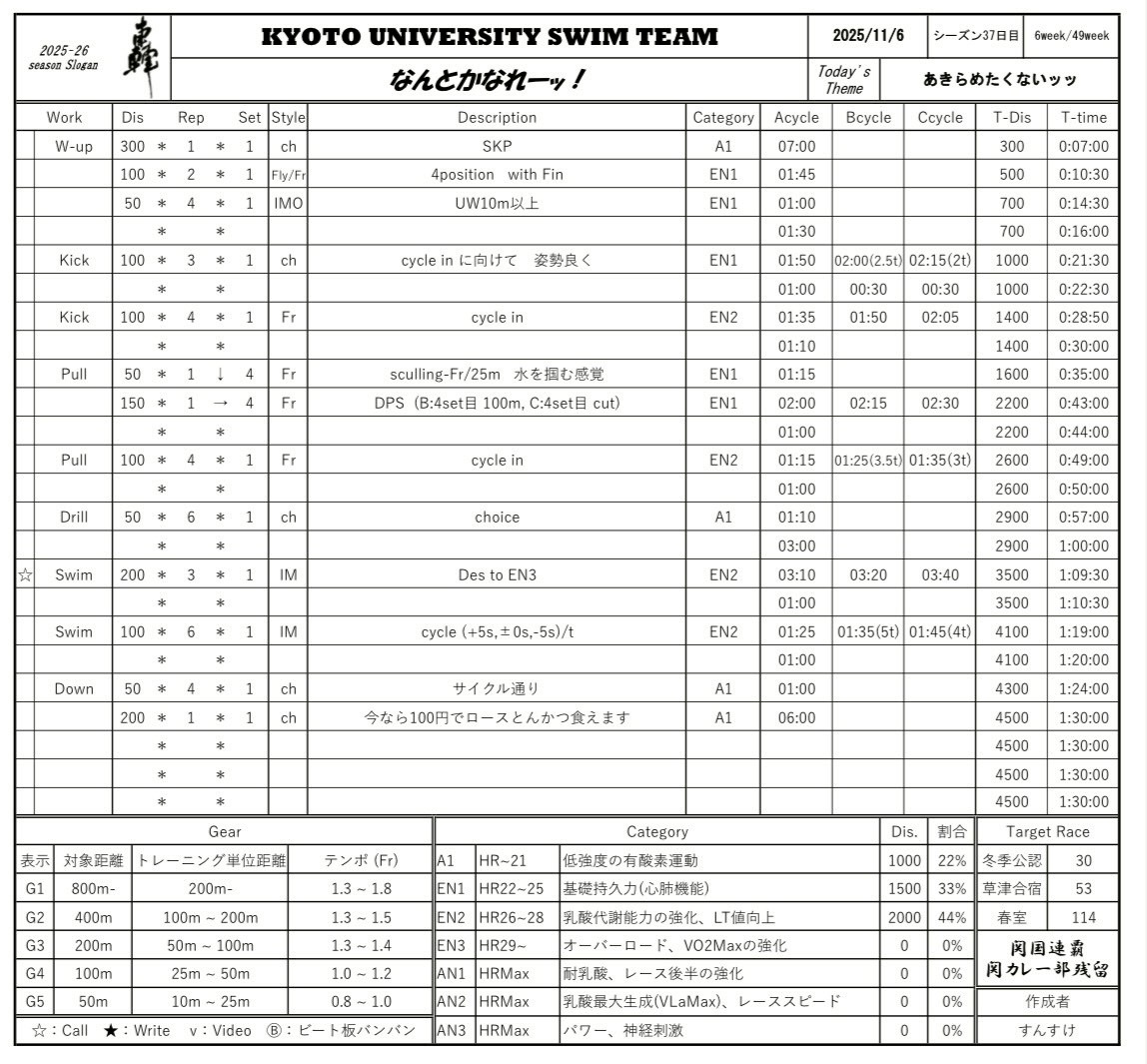 いかんせん全日にかず3と隔週で行うアレをしてしまったため本日は体がバキバキでなんとかならんかった。こういう日はバタ足だけ頑張って他はリカバリーすんのがええんよね
