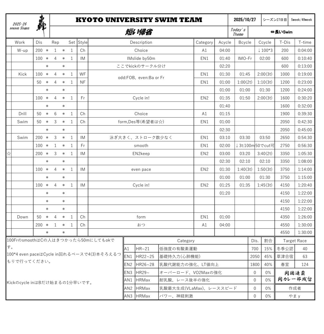 あと夏季長で泳いだ2フリが結構楽しかったので、今基礎鍛錬期やし、2フリ鍛えたいと思います。目標は打倒広大(長水)。