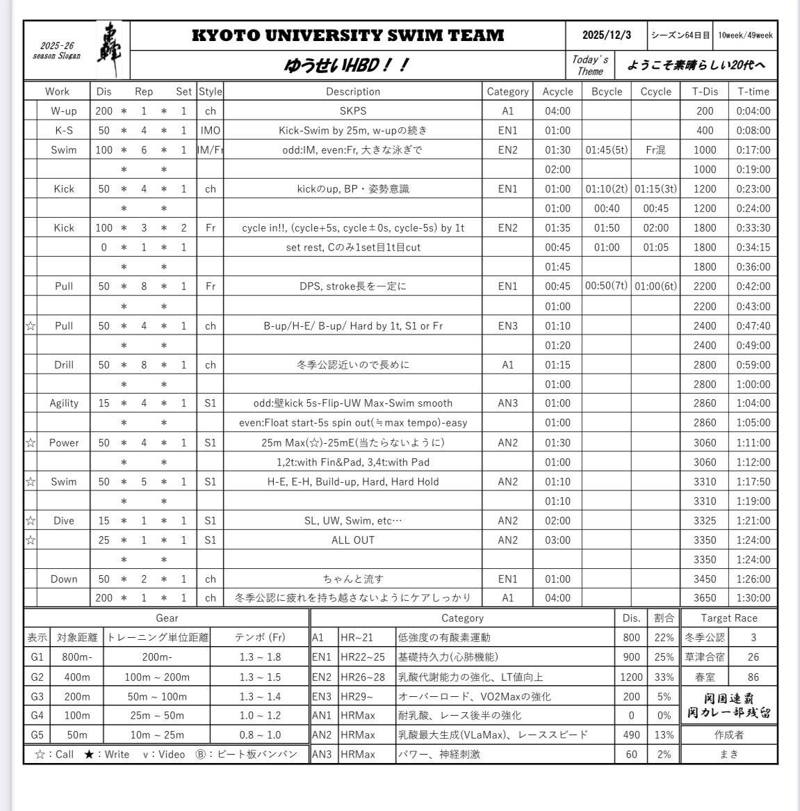 距離が短いので、やりやすかったなあとおもいます。50*3kickはまわれました(゜゜)