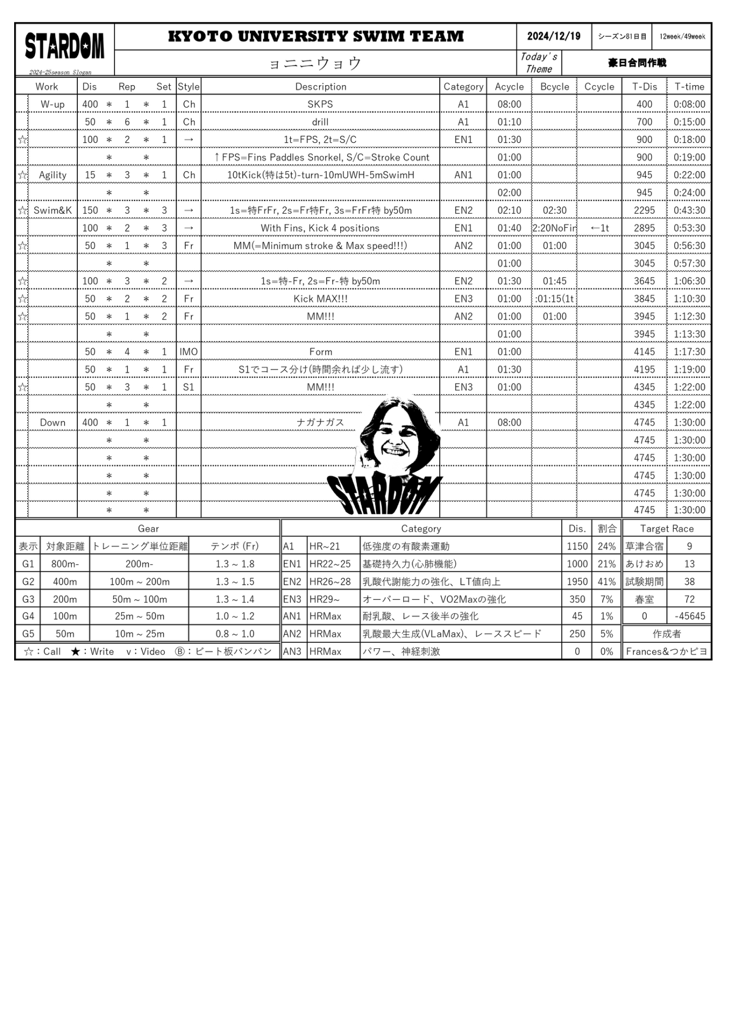 個人的には、こーゆーいい泳ぎで長く泳ぎ続けるみたいなメニューは気持ちいいんで好きです