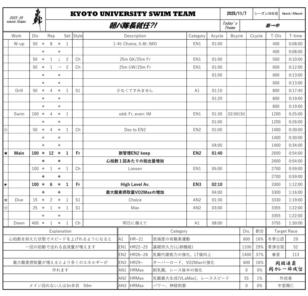 今日は前半肩の調子を整えに整えた甲斐あって、100m18本完泳することができました。オフ明けてからでは一番ハードできたのでいいでしょう。肩も回復しつつあるんで今度は全メニュー完泳を目指します。6時くらいに来て体操してから泳げたら最高なんやけど。さすがにもう少し移行期間が必要だ。