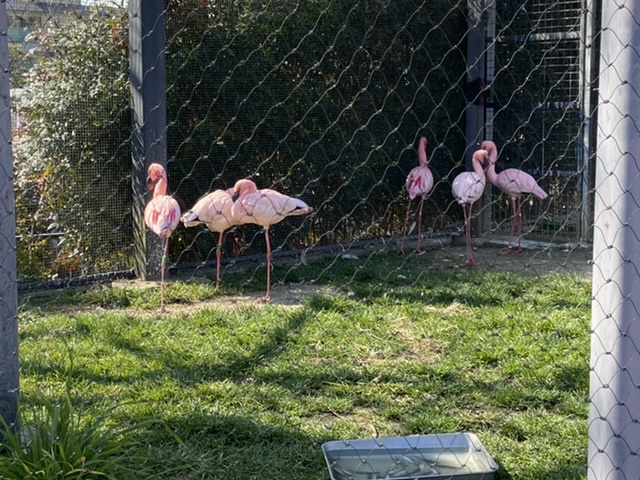 片足しかないフラミンゴが数匹いた。他の鳥(トキやったか鶴やったか)にも片足だけの個体が数匹いたから、鳥界隈では片足だけは普通なのかなーっと思った。