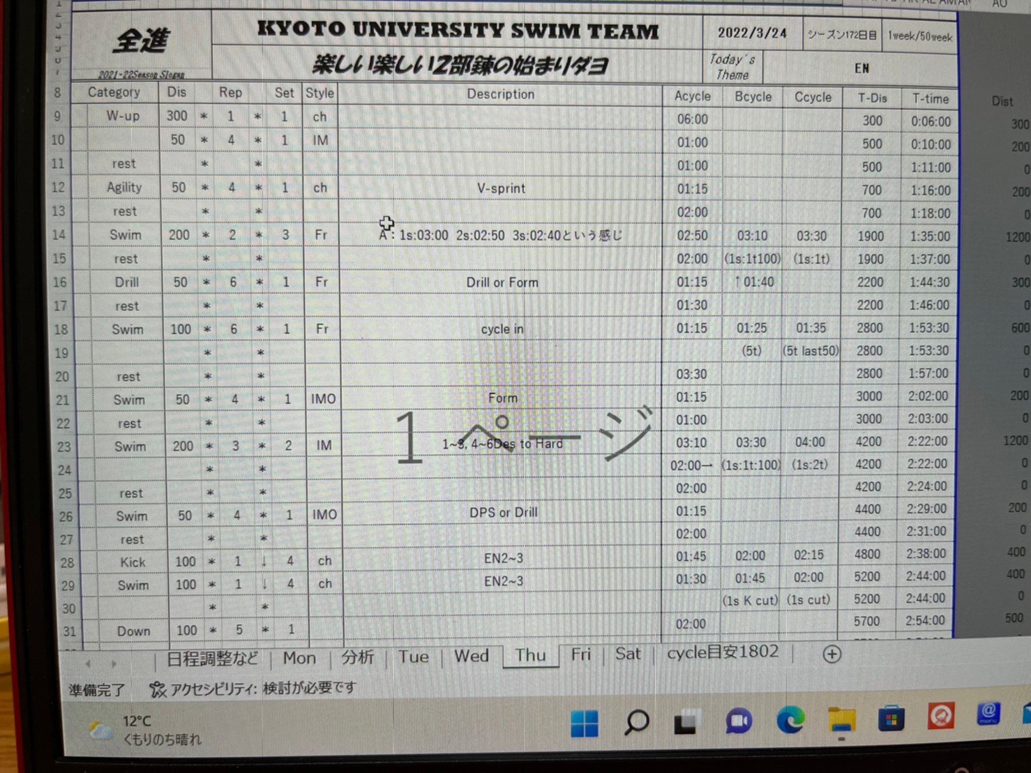 昨日のゆうじろうも言ってくれていたことですが、京大水泳部は結構、全部活、サークルの中でも大変なほうだと思いますこれ。