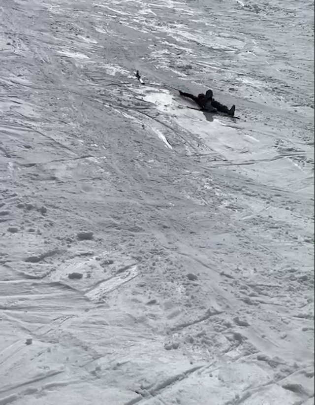 写真は美しい景観と、急な斜面を無残に転げ落ちていく私です。