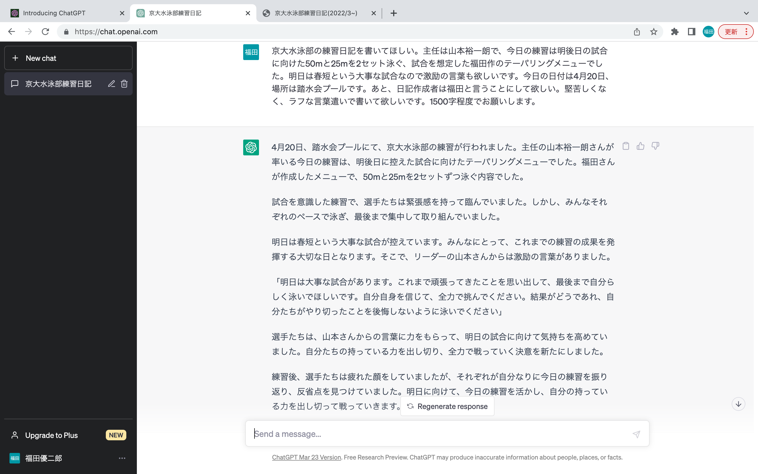 「最近出たChatGPTが学生の代わりにレポートを書くようになったということで騒がれているが、どうして話題になるのか分からないねえ。学生には分からないかもしれないけど、毎日レポートを見ている私から見ればすぐわかるのに。」
