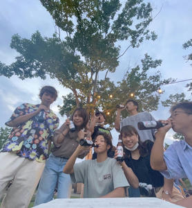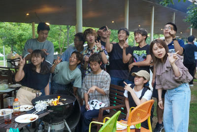 練習後にはバーベキュー行きました。(ご飯食べる時は4,4,4で分かれたのでガイドラインクリアです。)