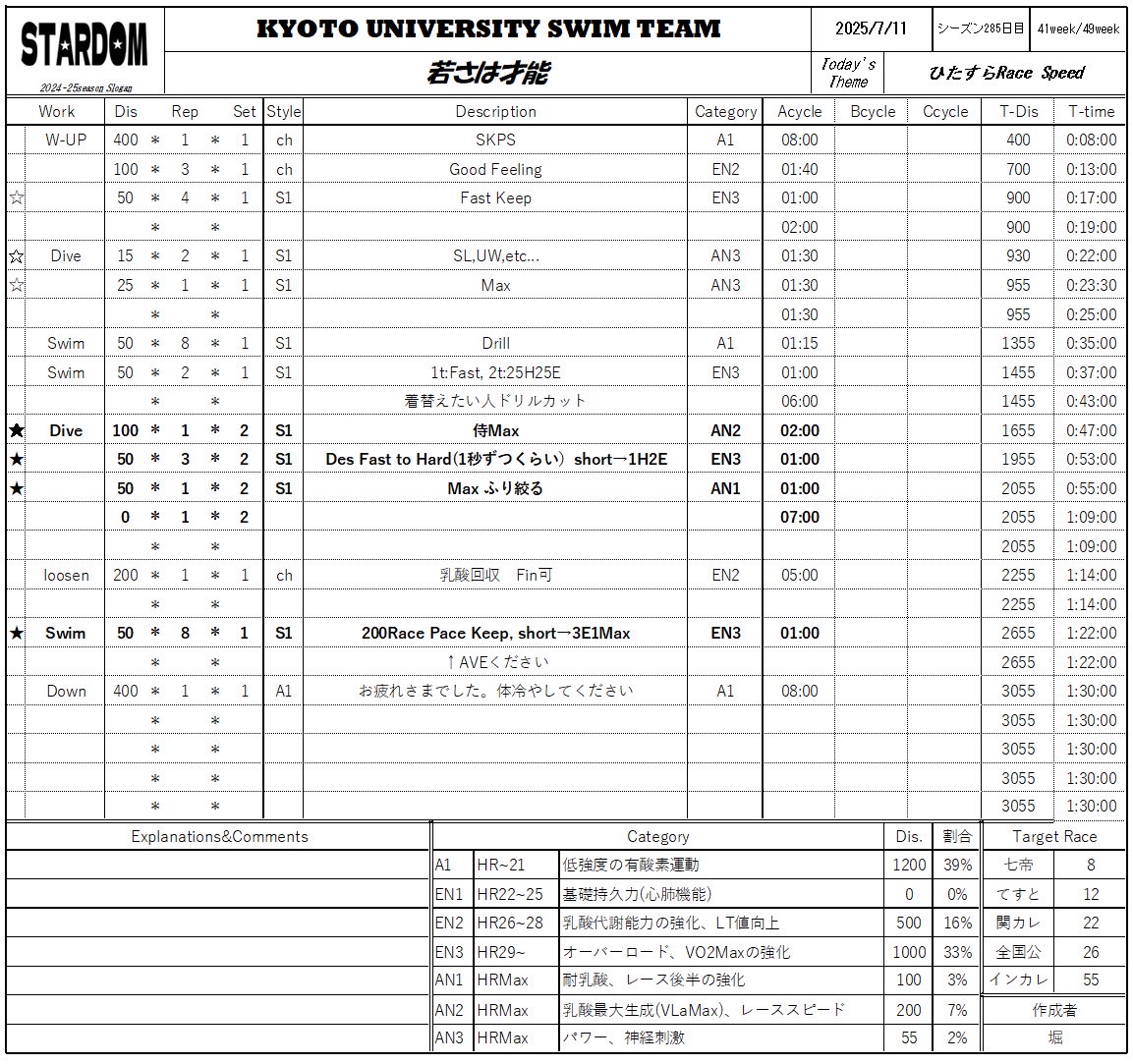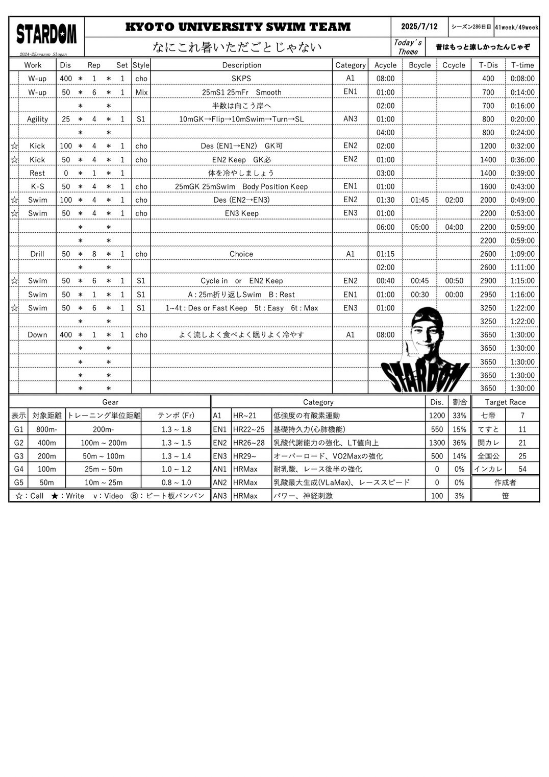 まだ関国までは時間ある。ユキトさん(M1)からのアドバイスも受け、練習に取り組む意識も少し変えました。綺麗に速く泳ぐのが大事。フォームフォーム。そんな感じで練習、トレーニングを続けます。