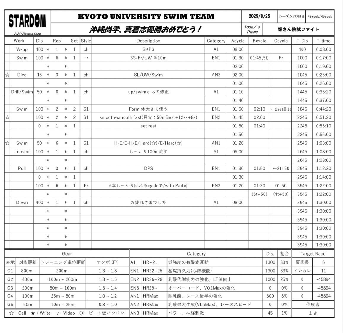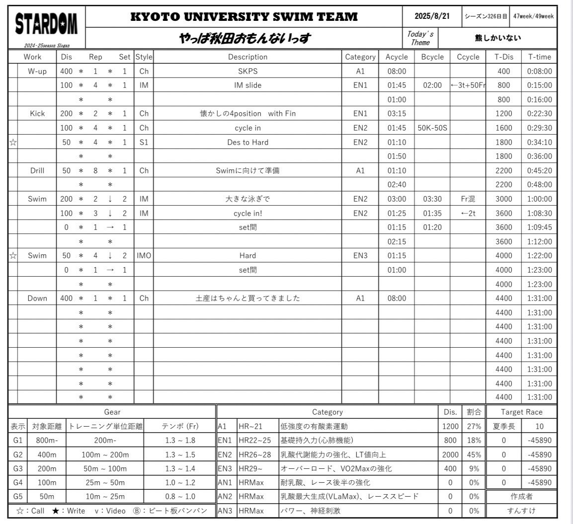 いざ泳げと言われても足引っ張らないように2フリの練習もしたいです