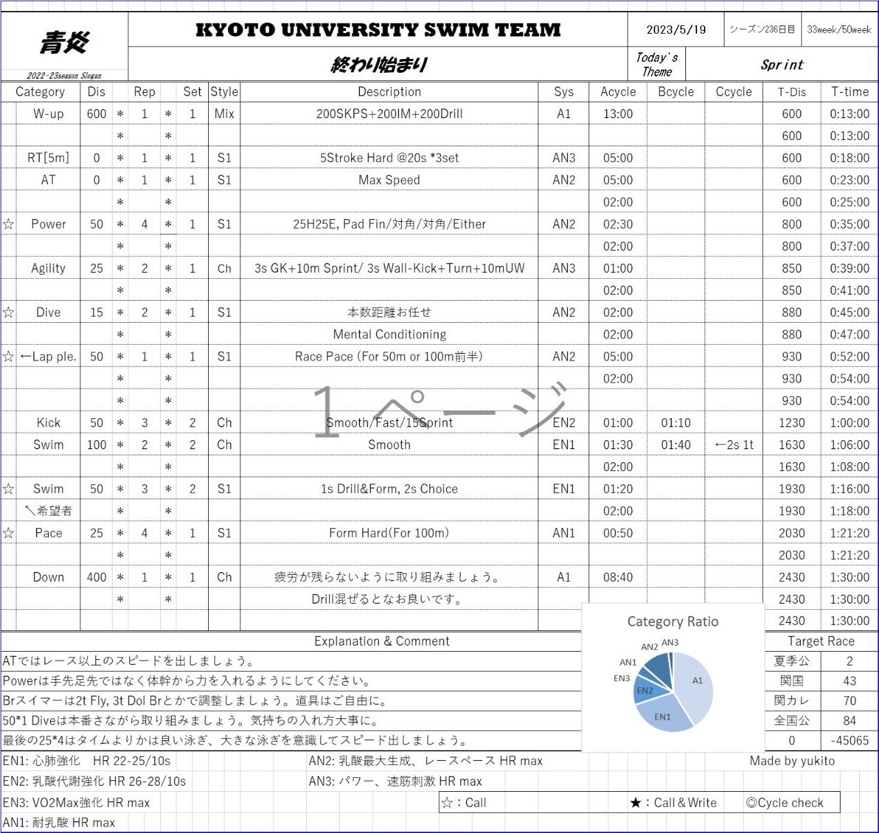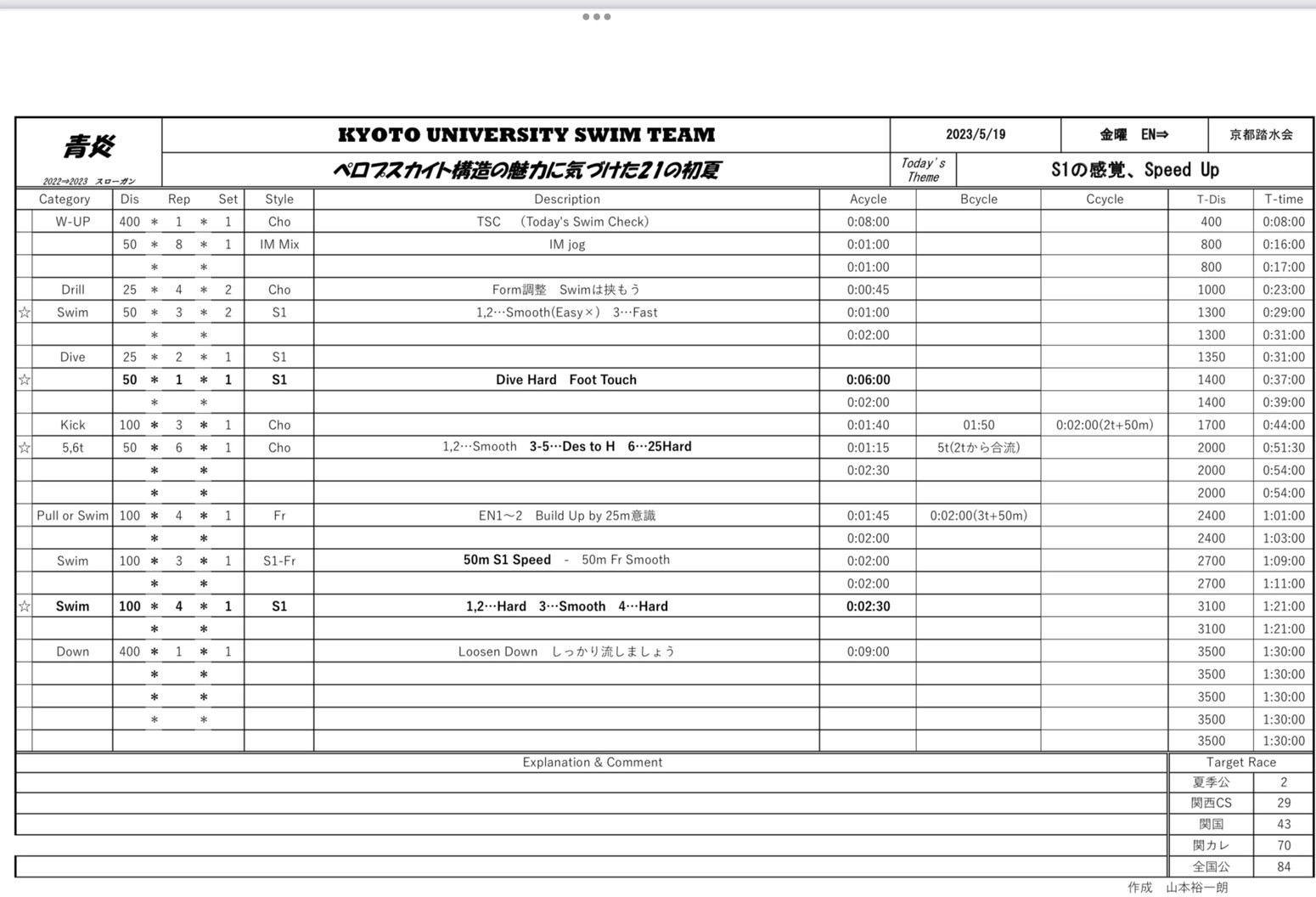 また、take your marksの練習もしているので、練習後に泳ぎたい方いたら是非声を掛けてください。