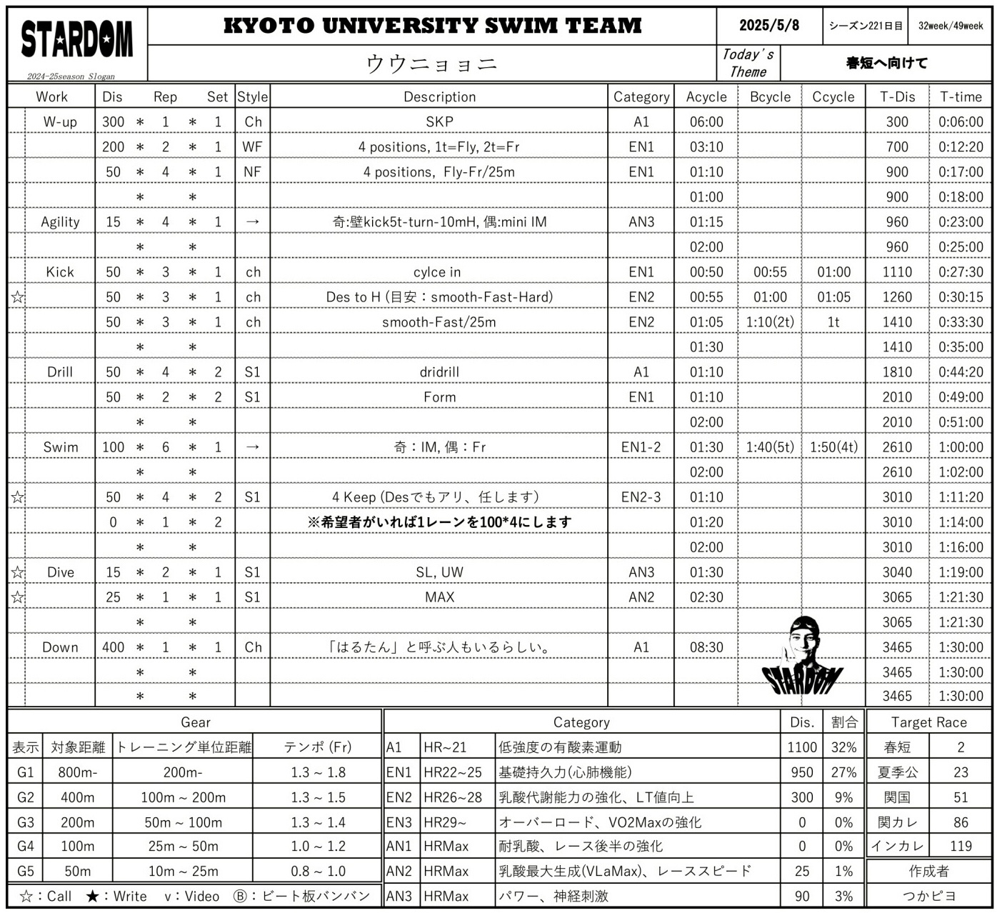 大学水泳での大きな目標はインカレ出場、全国公優勝です。受験で約7キロ太ってしまい、体力も落ちてしまったのですぐには結果は出ないと思いますが、好きな水泳を楽しみながら速くなりたいです!