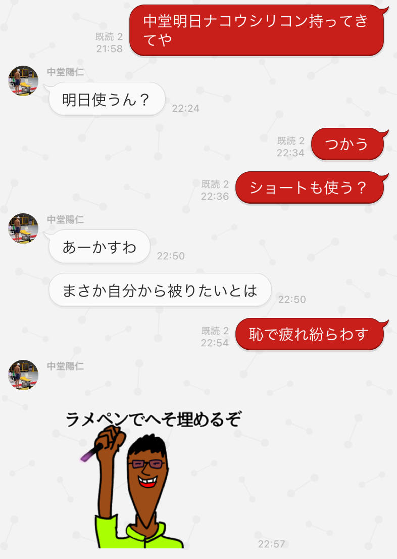 だいたいみんな予想通りでした。〇×クイズして借り人競争して写真撮って、たまに遊ぶ子らとしゃべって水泳部と顔合わせて最後は見慣れた同じ学科のメンバーでしゃべって終わりました。あんま代わり映えなかった。