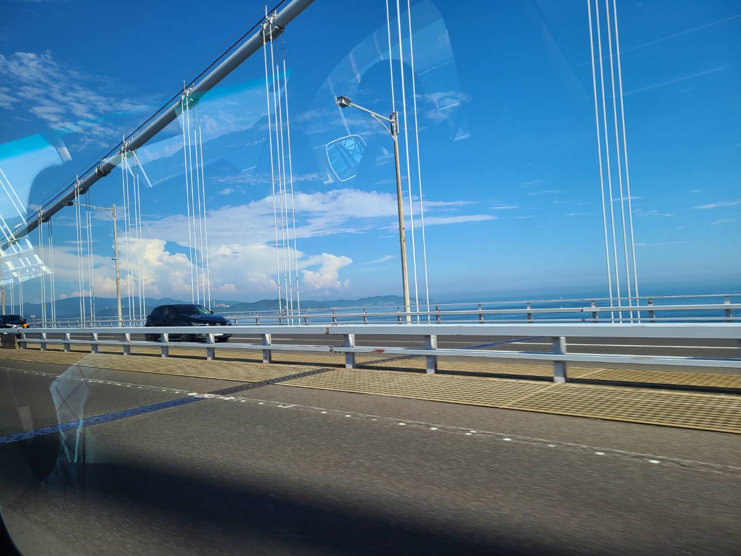 妹が全中で3位に入ることができて、家族皆ルンルンで明石海峡大橋をドライブしているときの写真です。秋を感じる頃になると、夏がいかに一瞬であるか、青いものであるか、眩しいものであるかを思い知らされます。