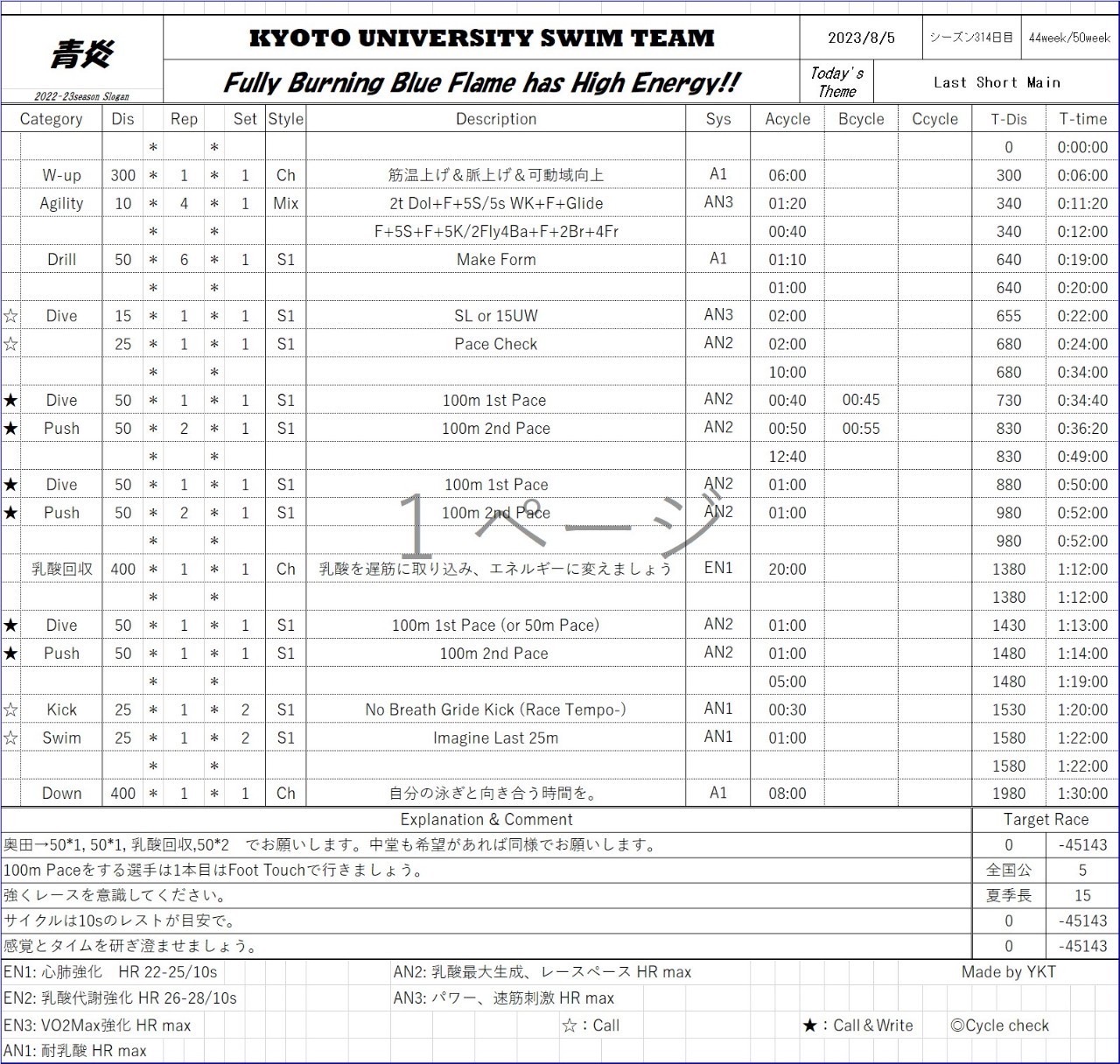 メニュー作ってくださった皆さん、暑い中タイムとってくださったマネさんトレーナーの方々、今日もありがとうございました。