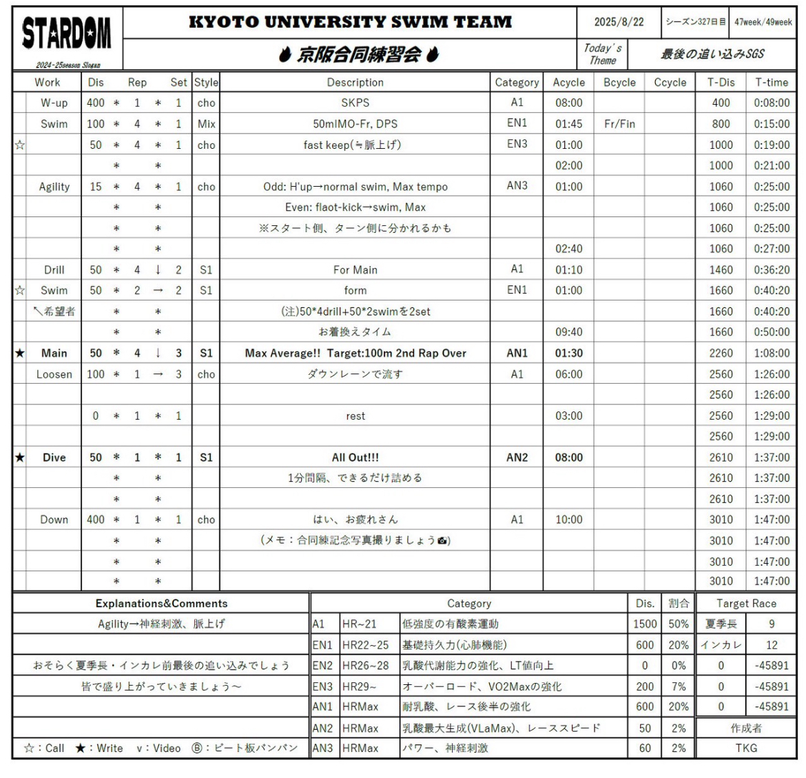 いざ泳げと言われても足引っ張らないように2フリの練習もしたいです