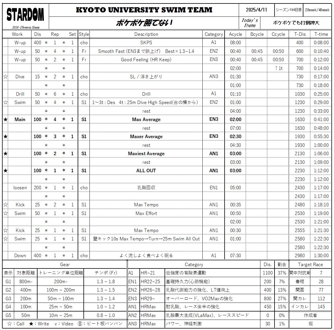 昨日の疲労が抜けきっていなかったのか、慢性的なしんどさと共に泳いでました。某トレーナーさんに、「キックの膝の曲がり方がひどい」と指摘されたのでそれ意識してキックやったら太ももめっちゃ痛くなりました(でもこれっていいことかも)。最後のだいぶは32.7(ベスト+2)でした。タイムはギリ耐えですが、ストローク数が多かったのが気になりました。