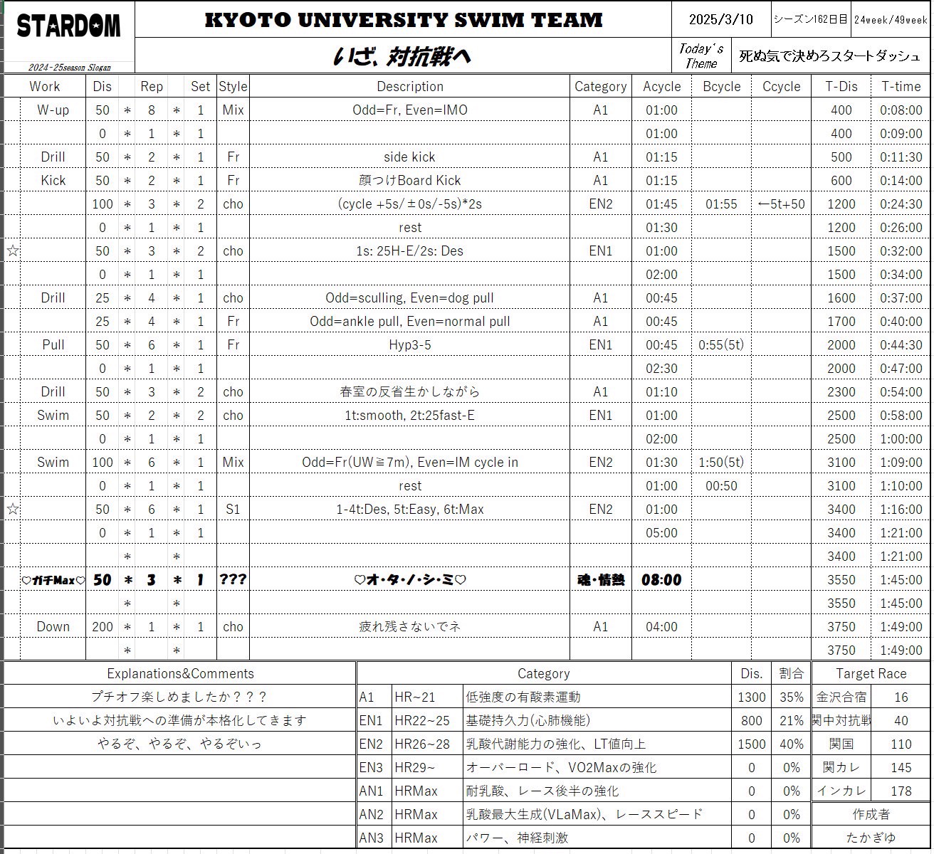 次は対抗戦に向けて泳ぎ込みって感じだと思うし、合宿もあるので、