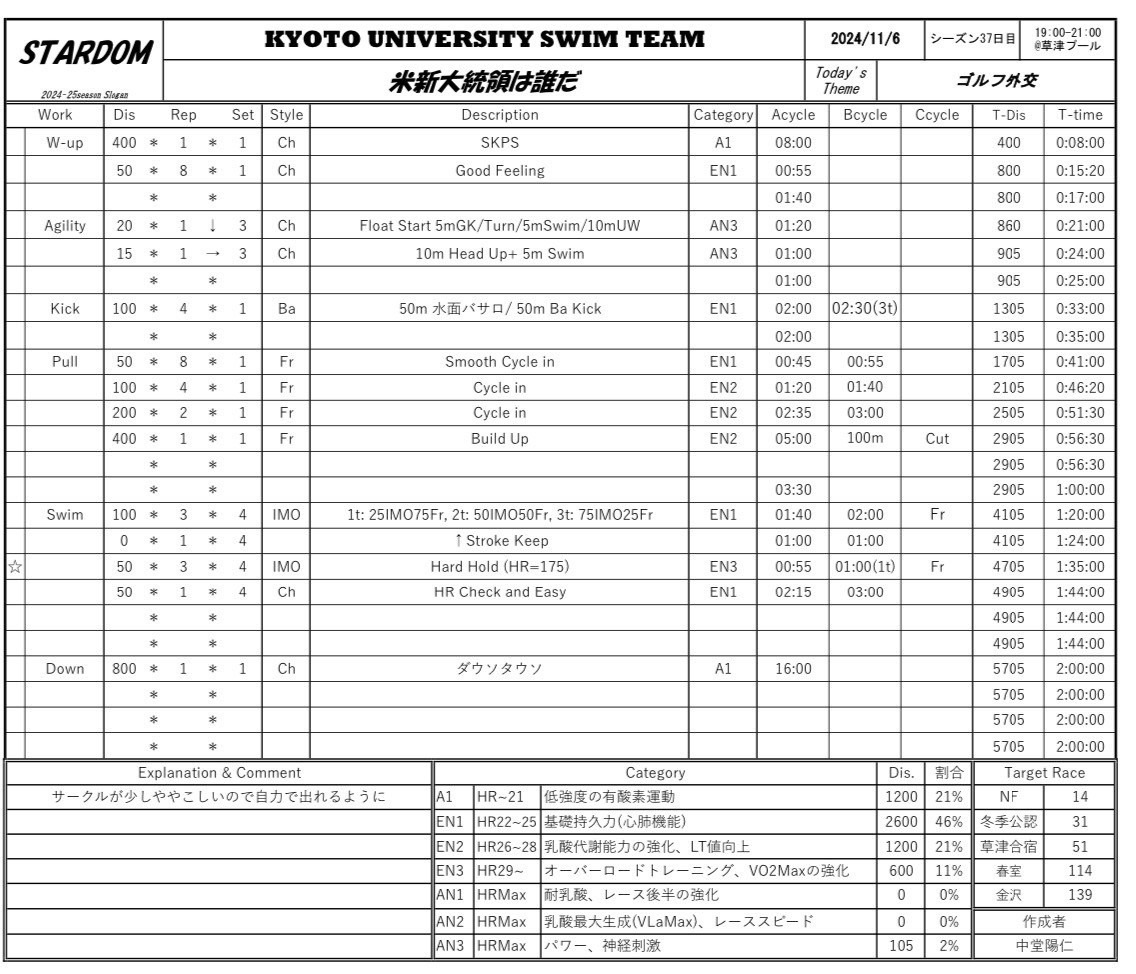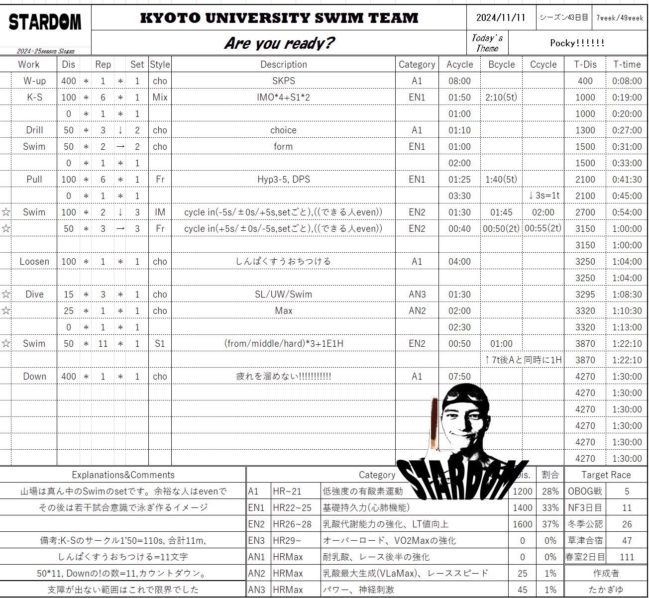 それに、ちゃんと成長してるって実感できるのもうれしい。この前の火曜日のMax Average、秋葉山合宿の時から4種目それぞれ5秒ぐらい上がってました。ほめてくれてもいいんですよ。