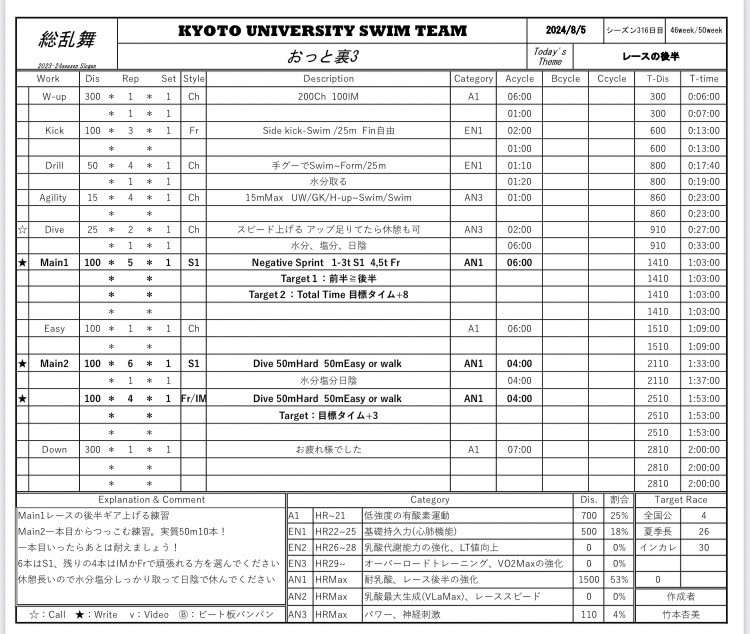 毎年夏が近づくにつれてモチベが上がってくる自分は、3回生になるタイミングの和歌山合宿から本気を出して練習に取り組むようになりました。水泳部のために頑張りたいという気持ちが少しずつ芽生えてきたのもこの頃です。気温が上がるにつれて練習頻度も上がってくる自分は調子も上がって一度だけ裕一朗さんを○すことに成功しました。水泳ってちょろいカモと思ったのも束の間、、、