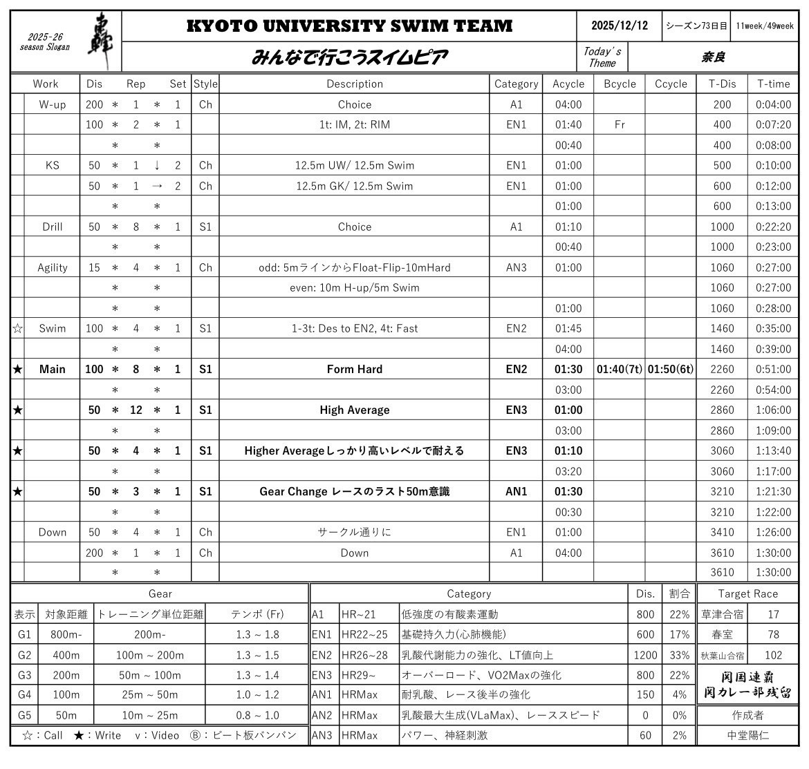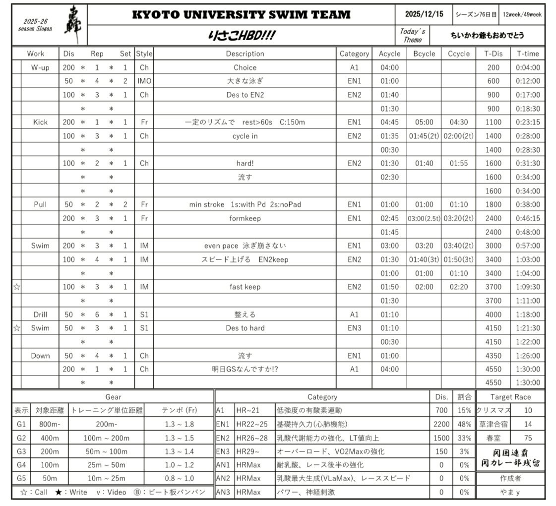 キックとIMがへっぽこなので今日のメニューはきついというよりも難しかったです。