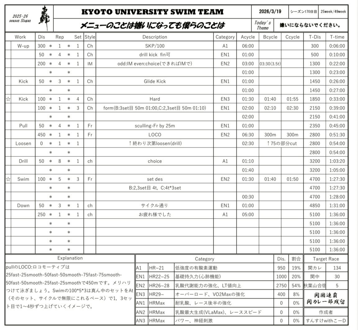フリーはプルとキックどっちも考えないといけないんできついです。最近は大きくかく、最後までかくことを意識して泳いでいるのでタイムの割にしんどいです。