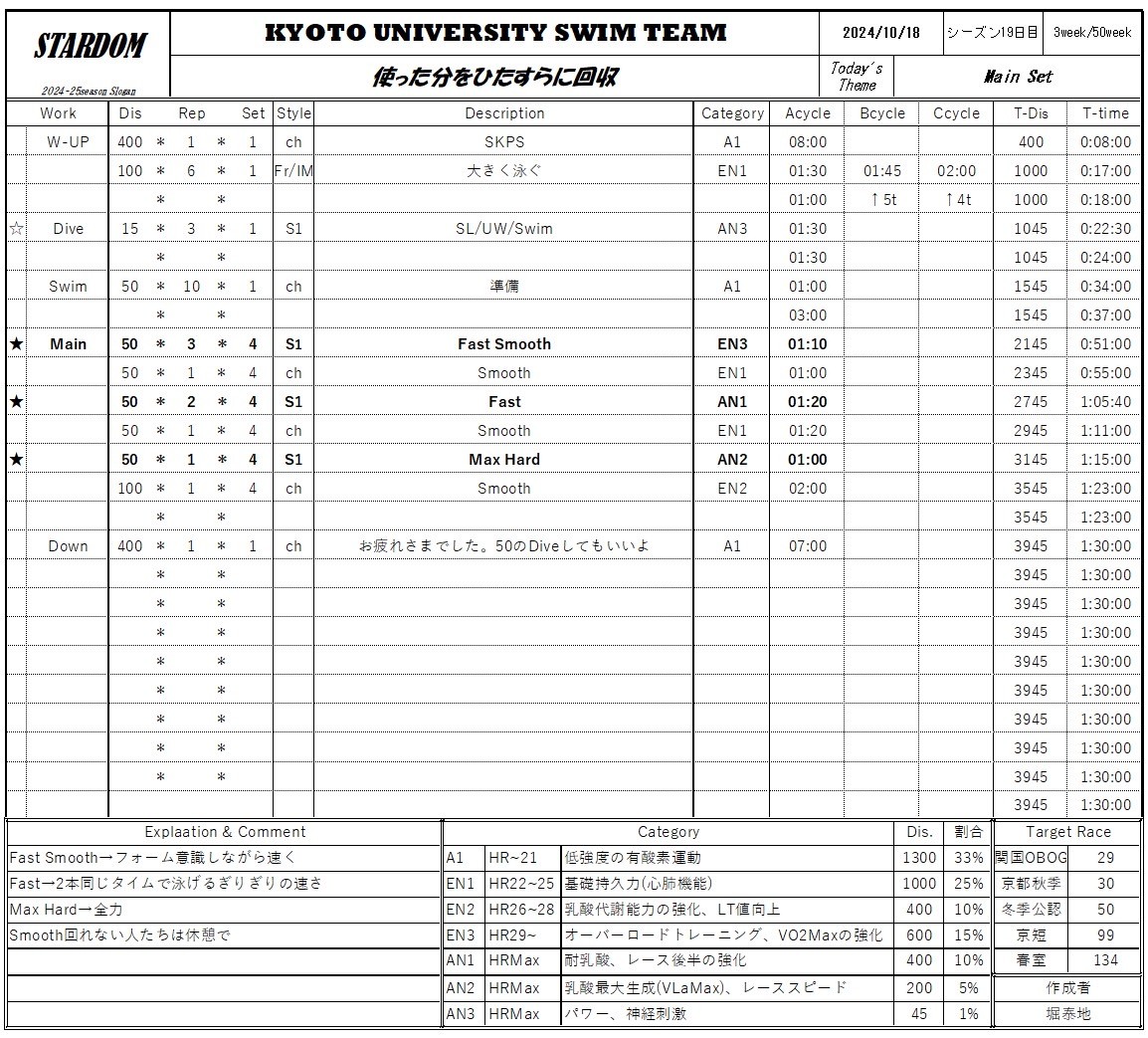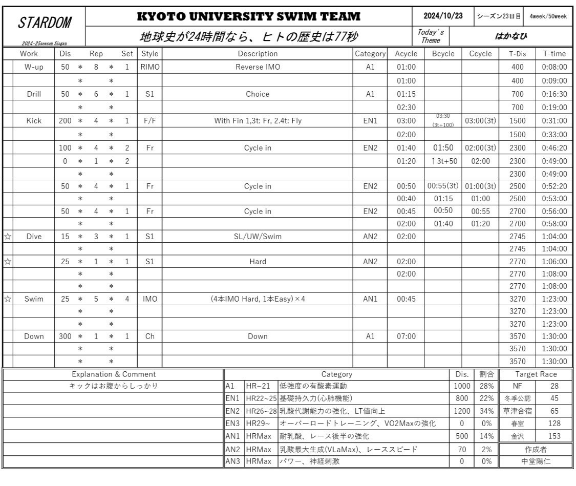 自分が泳いでた時もこういう練習はよくしていたので、懐かしくもあり今日の練習行けてよかったです