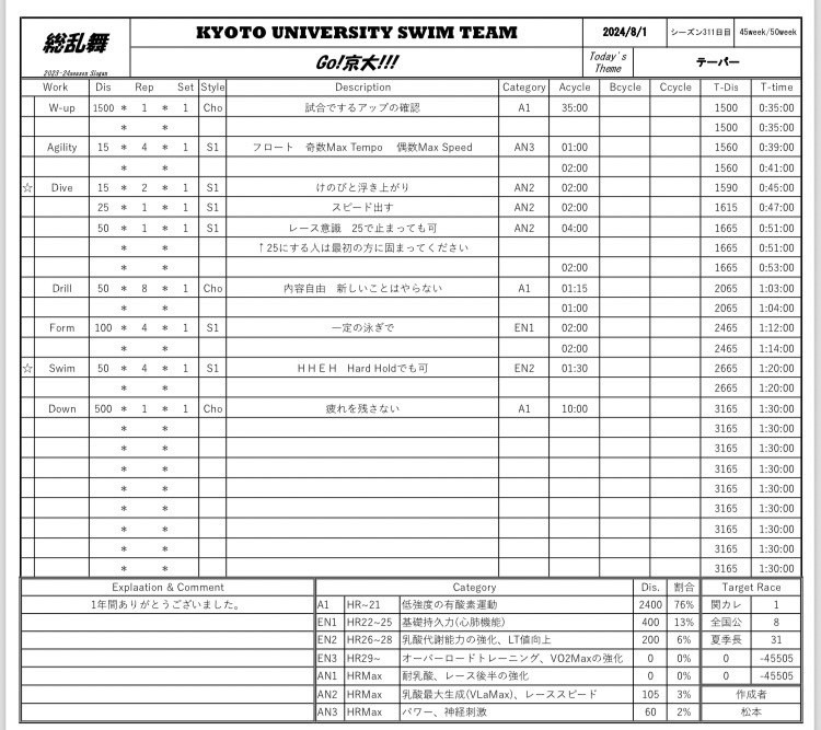 4回生方の引退日記と並行での練習日記となります。当然のことですが、4回生方のことは4回生になってからしか知らないので、日記を読むことで自分の知らない、これまでを知れるのはとても貴重な機会なので嬉しいのと同時に、先輩方がどのような気持ちで水泳や水泳部に向き合っていたのか。これを日記という形で残していただけるのはとても光栄です。