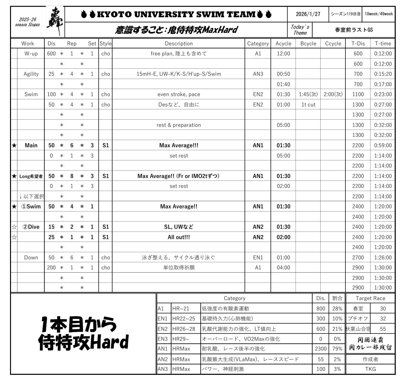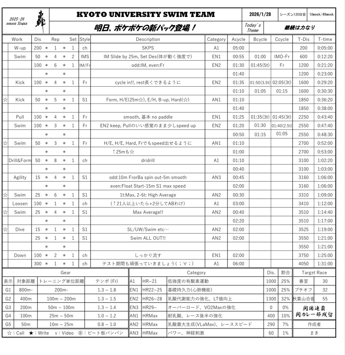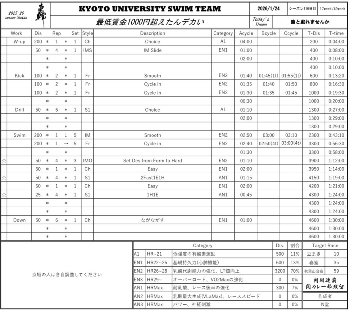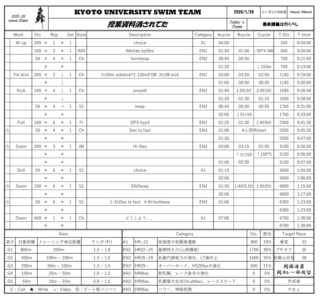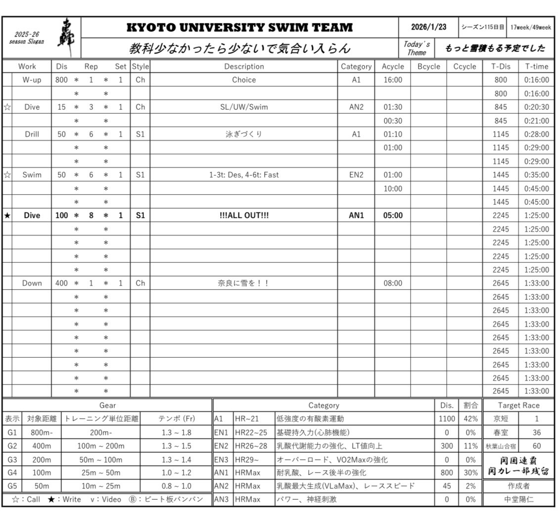 にしてもしんどかった、去年から数えたら10回以上やってるメニューのはずなのに、いっつも死にかけになります