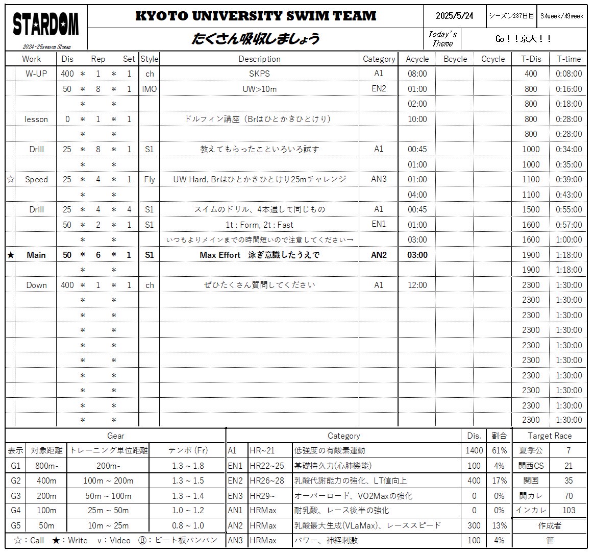 私はインカレ出場者を輩出に貢献するのが目標で京大水泳部に入部しました。まあ私は全く力にはなれた感じはせず、悔しかったですが、、